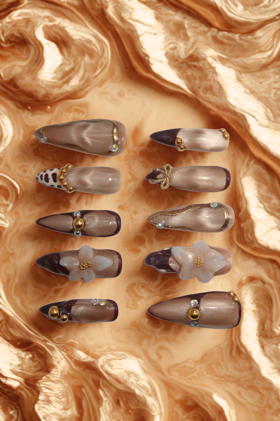 Bold patterns and artistic flourishes blend harmoniously, reflecting a fierce yet playful style. With sharp edges and glossy finishes, these nails embody confidence and creativity, making them a perfect statement piece.