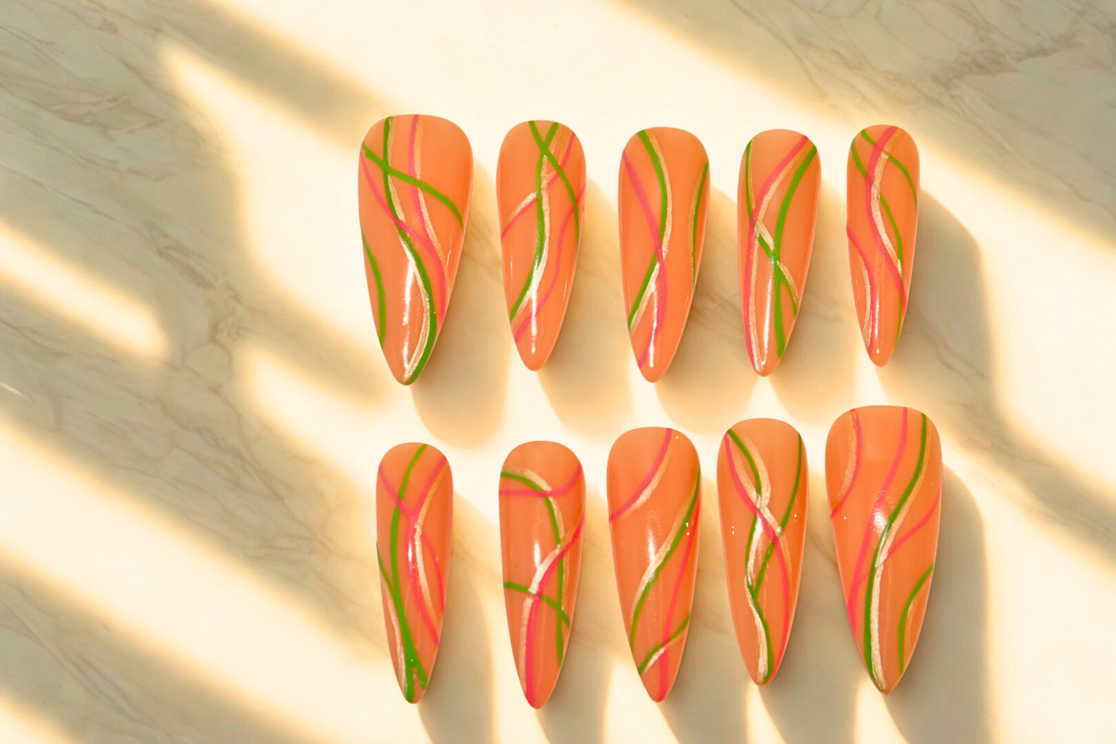 Set includes nail prep kit features a mini nail file, a mini nail buffer, a cuticle stick, alcohol wipes, nail glue, and 2 sheets of sticky adhesive nail tabs.