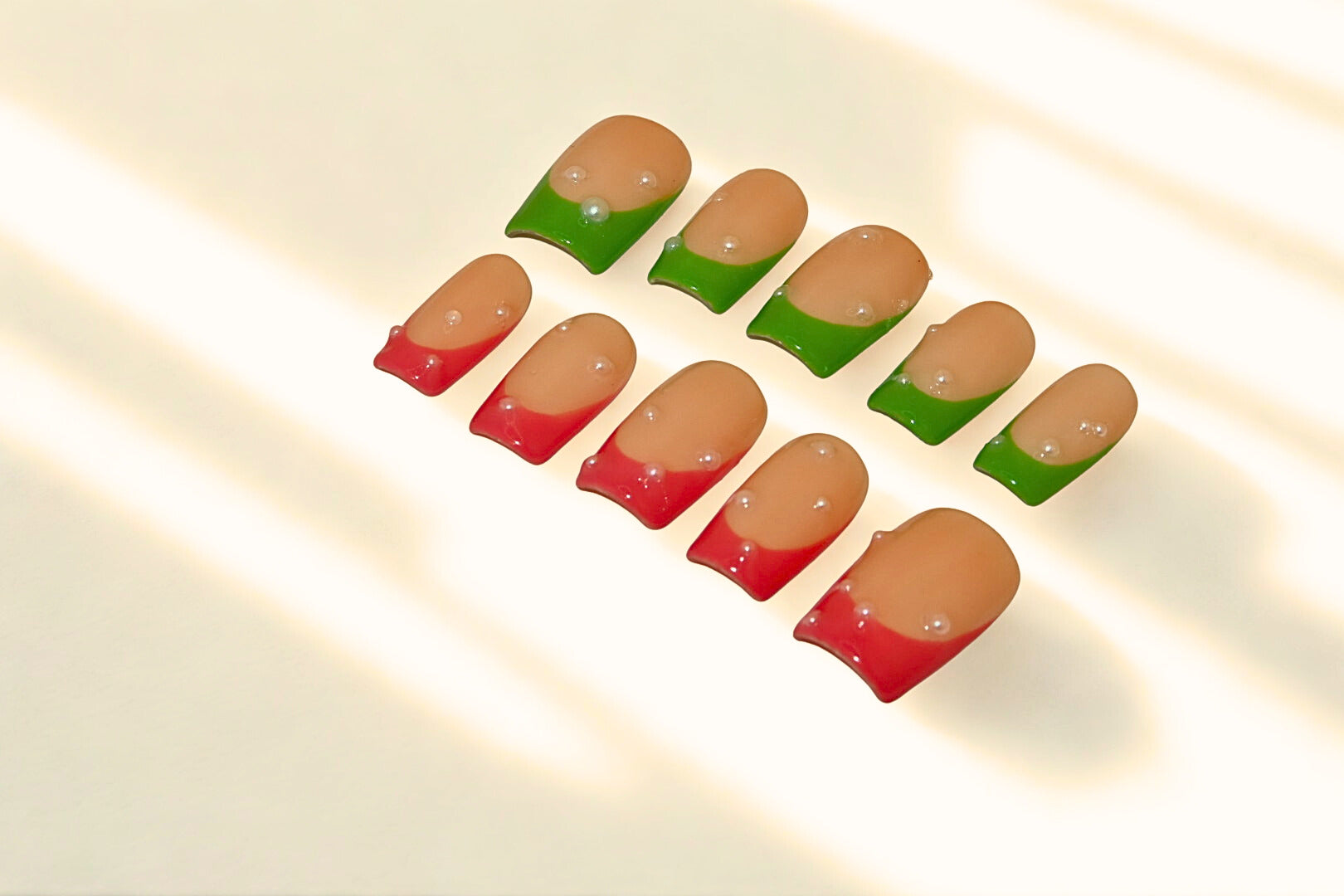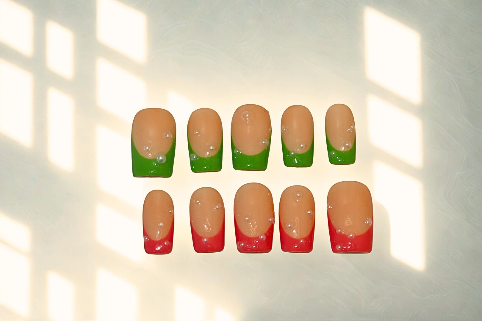 A twist on classic French tips, why not make it wicked themed!! Are you team Elphaba or Glinda, both sides adorned with beautiful pearls giving this set a classy vibe.