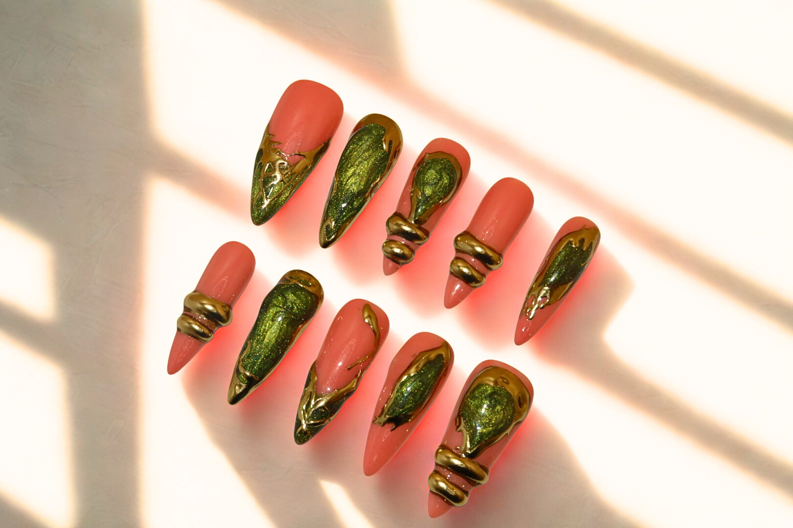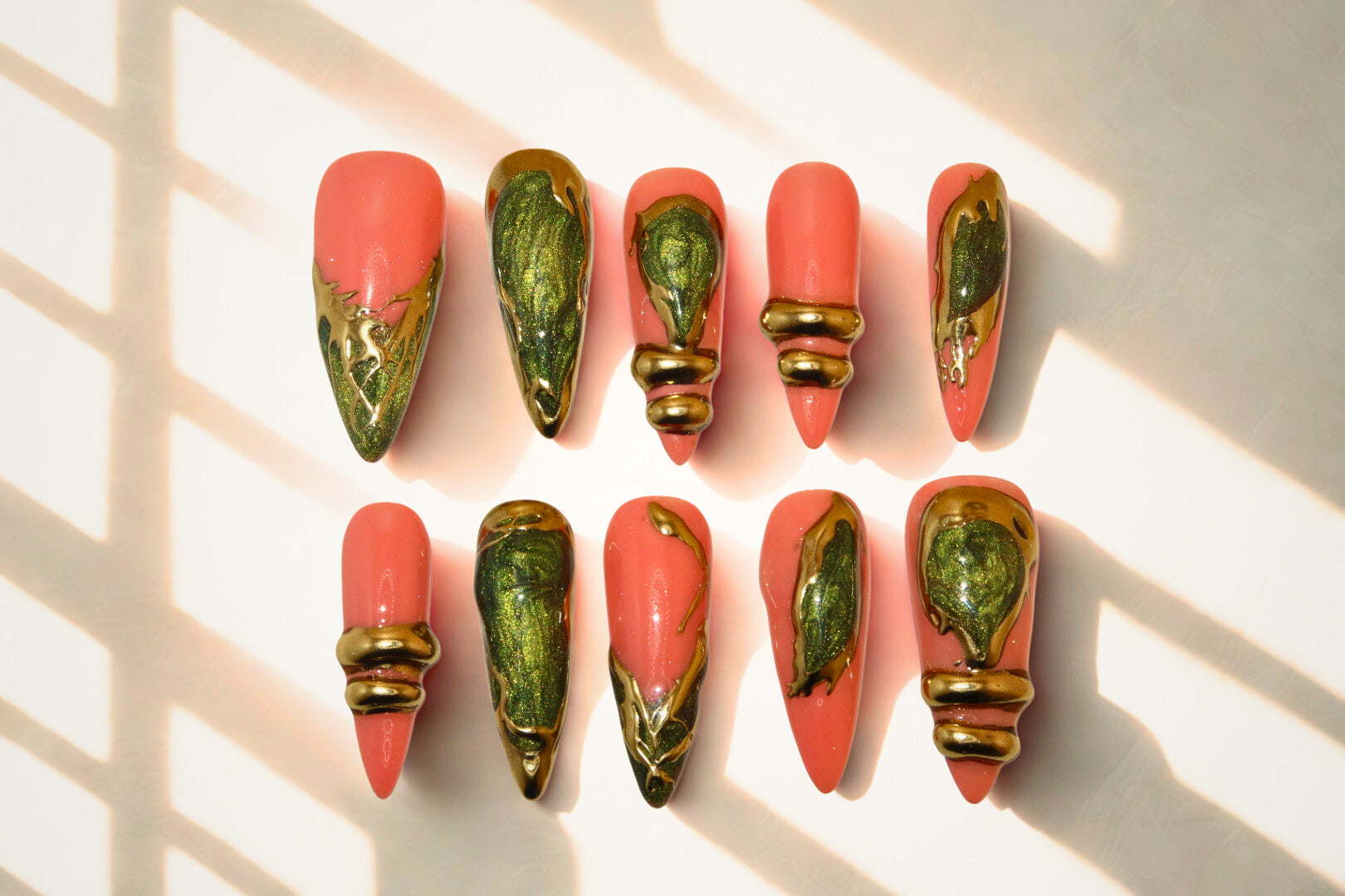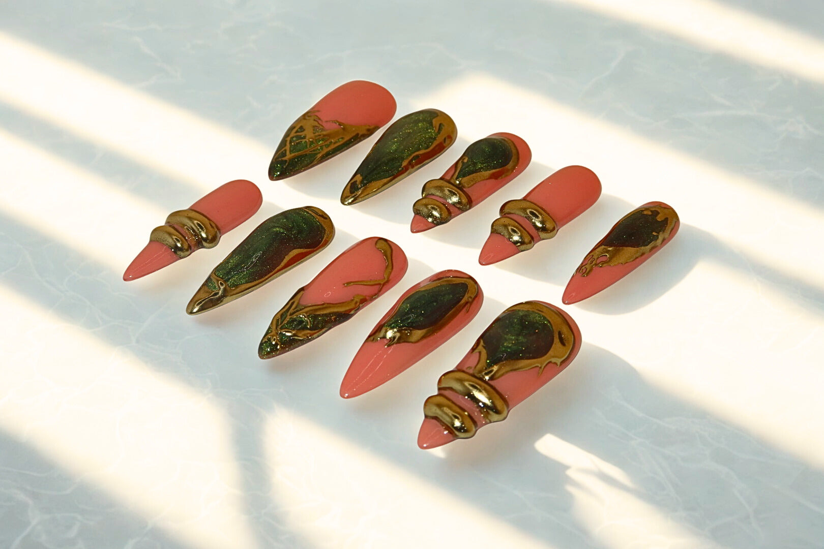 Dive into a bold and vibrant world with the "Wicked Temptation" nail set, designed for the fearless and adventurous spirit. This collection is a vivid celebration of tropical hues and intricate designs, perfect for making a statement wherever you go.
